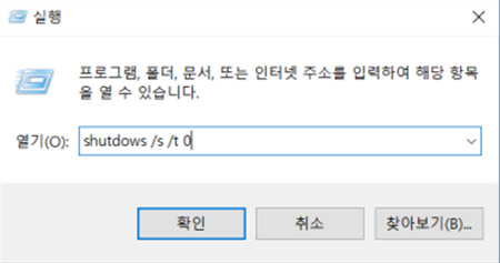 shutdown /s /t 0 : 0초 후 컴퓨터 종료